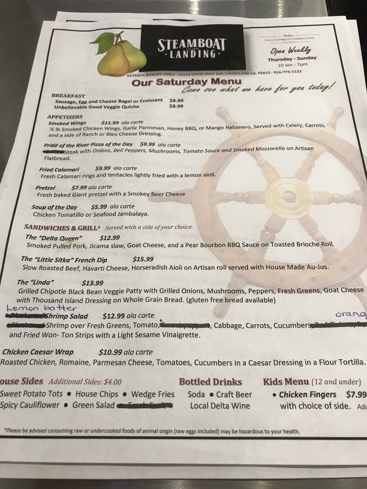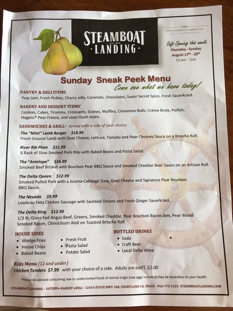 Steamboat Landing Menu